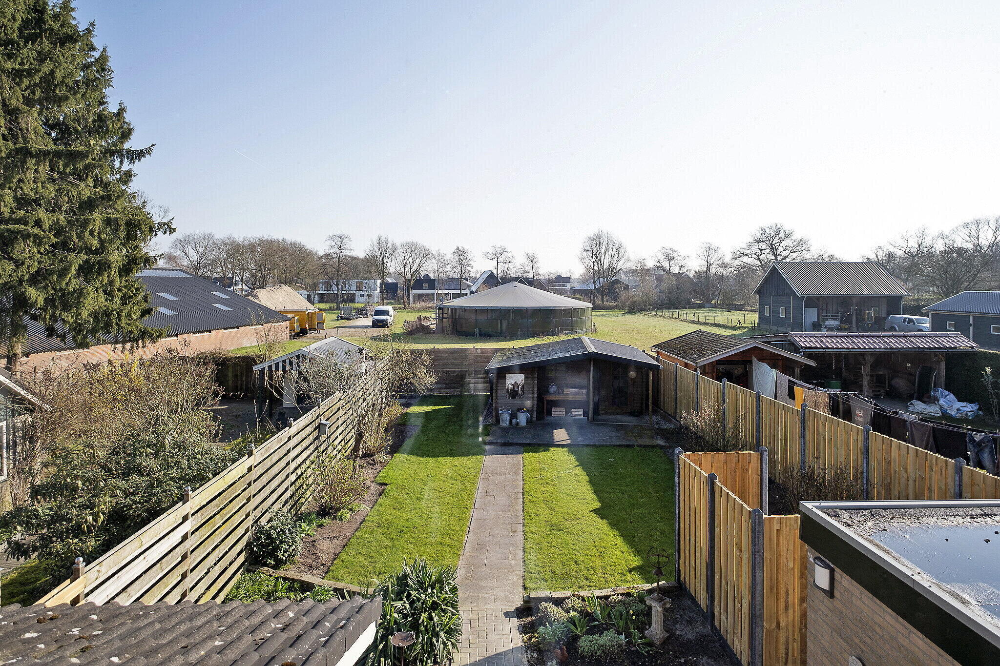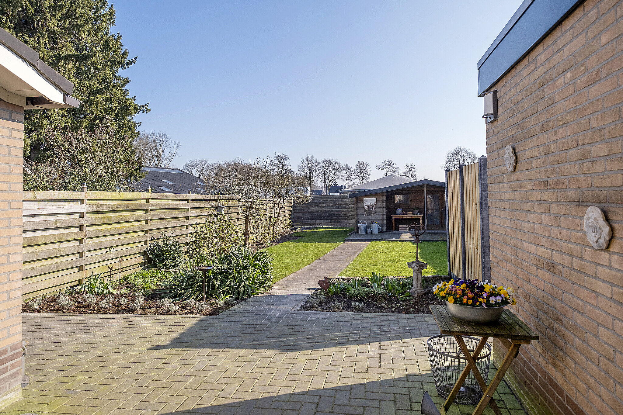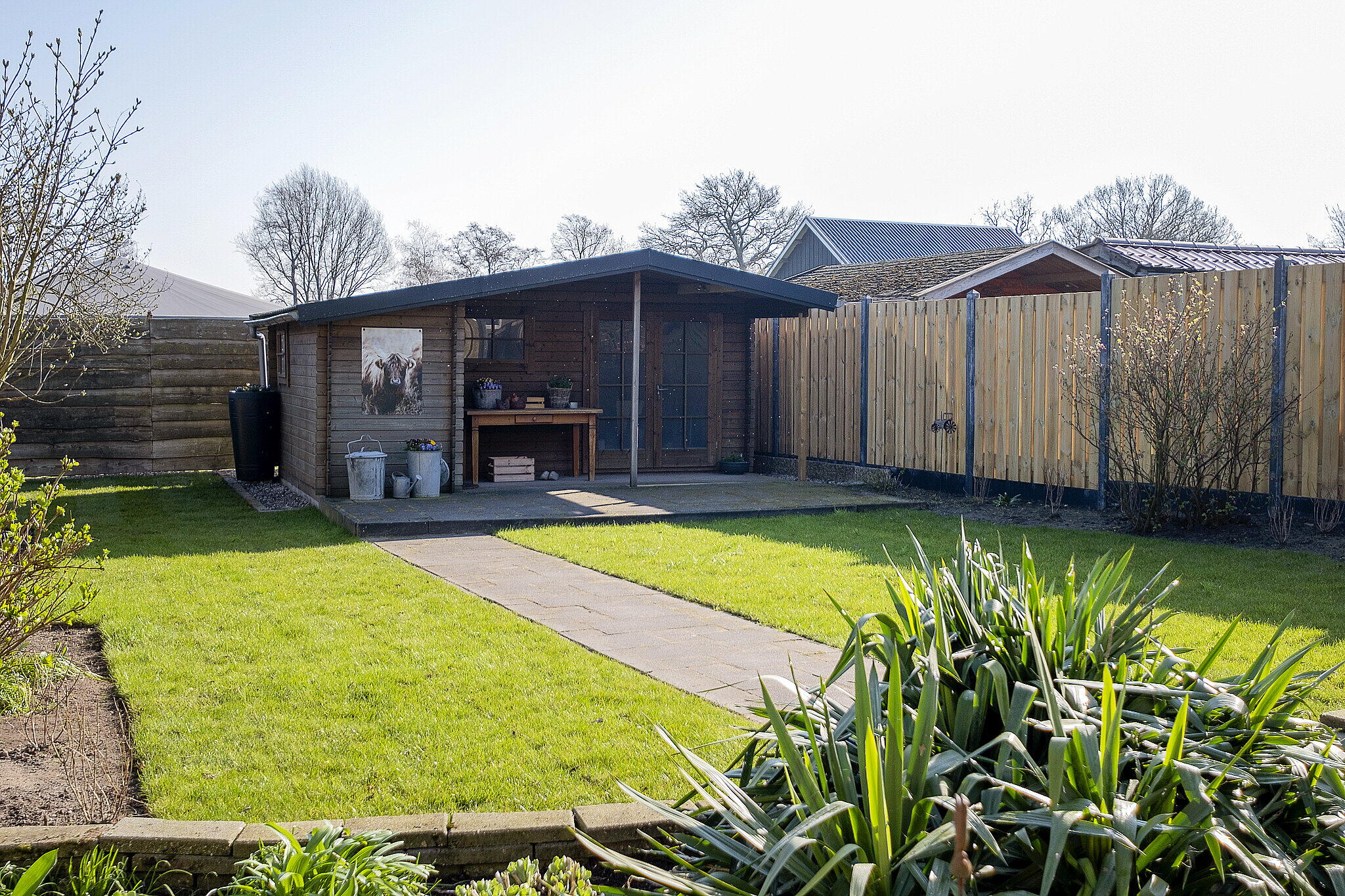 - Heerlijke achtertuin met een houten berging.