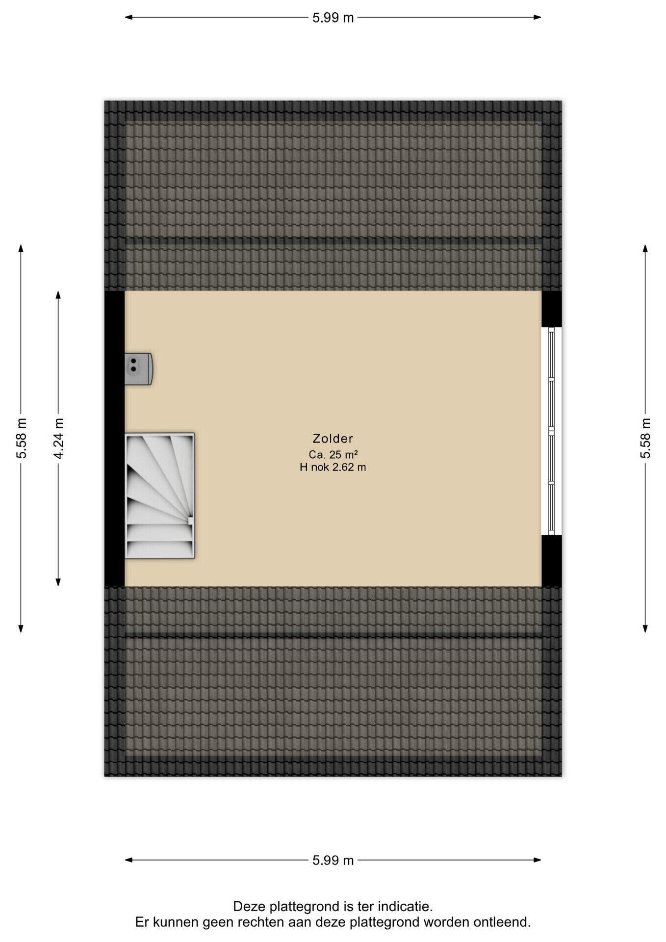 Via een vaste trap is de tweede verdieping bereikbaar. Deze ruime zolder (ca. 25 m²) biedt volop mogelijkheden, waaronder het realiseren van een vijfde slaapkamer.